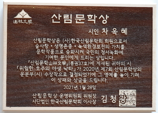 ◆ 2021년 1월 산림문학상 수상 ↑
