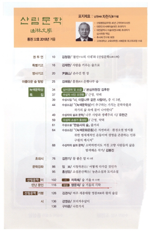 ◆ 2018년 12월 『산림문학』 집중 조명 ↑