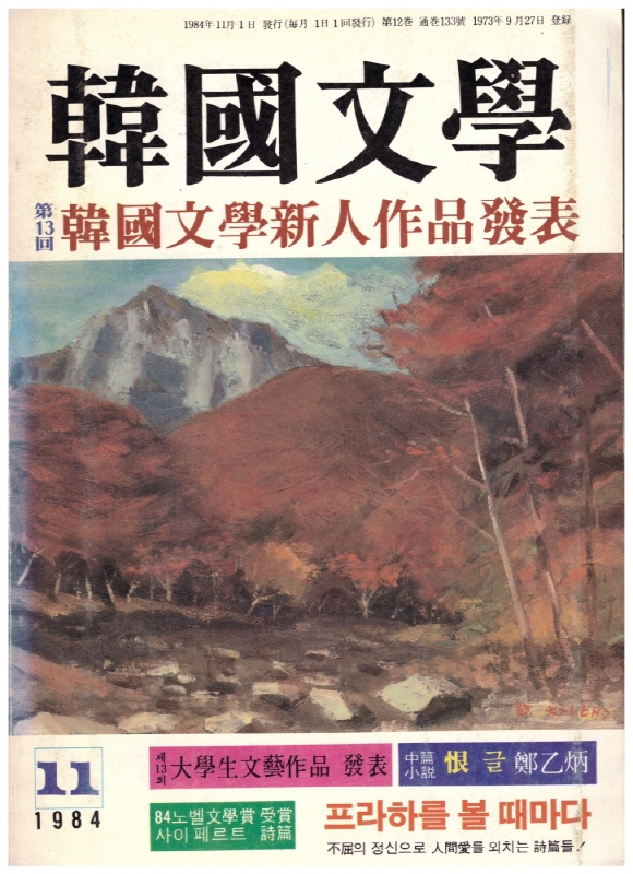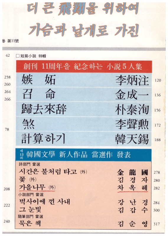 ◆ 1984년 11월 『한국문학』 신인상에 당선되어 시인으로 등단 ↑