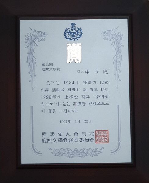 ◆ 1997년 1월 경희문학상 수상 ↑